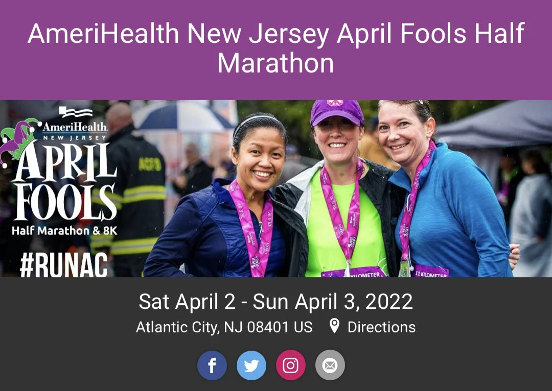 With over 8 miles of Boardwalk running the April Fools Half Marathon offers a shared start and finish line and fast flat course along the Atlantic. AmeriHealth New Jersey April Fools Half Marathon 2022. April Half Marathons in New Jersey.